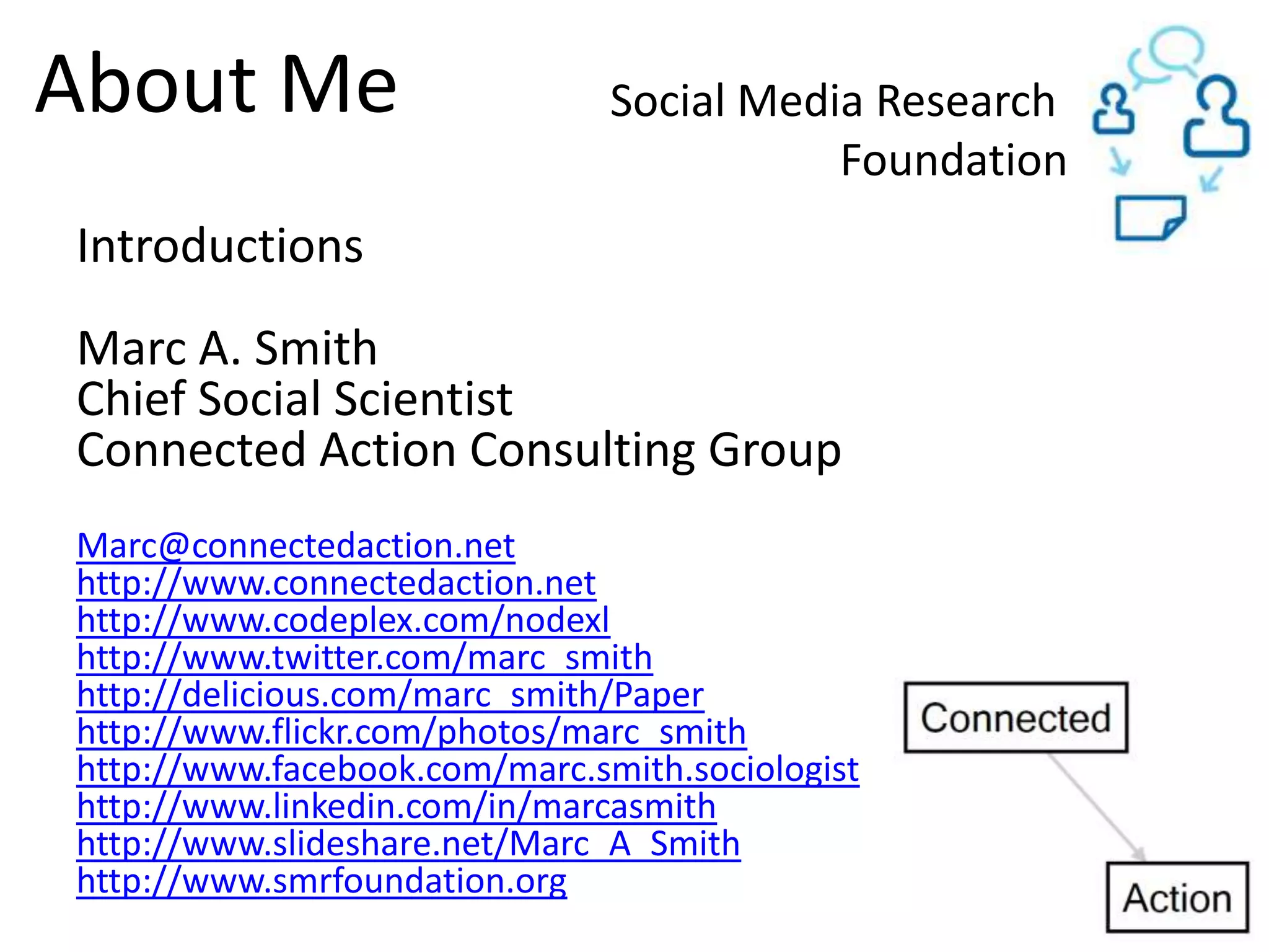 This document discusses mapping and measuring social media networks to identify important positions and structures. It introduces Marc Smith and the NodeXL tool for network analysis and visualization. The Social Media Research Foundation aims to create an open archive of social media network data and tools to study these networks.