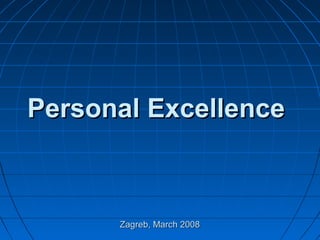This document discusses various aspects of personal excellence in devotional service. It outlines daily sadhana practices for residential and congregational devotees, including chanting the Hare Krishna maha-mantra, following the four regulative principles, and attending morning and evening programs. It also discusses developing excellence in relationships with other devotees through sharing love, respect, and developing a helpful attitude. Excellence in devotional service involves practicing the nine methods of devotion like hearing, chanting, remembering Krishna. Overall, the document provides guidance on achieving excellence in sadhana, relationships, service, leadership, and self-care.