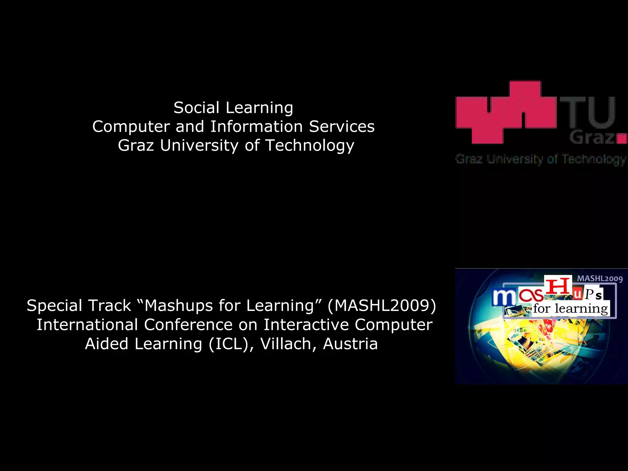 The document proposes a personal learning environment (PLE) concept based on mashup widgets to integrate university services and web resources according to individual student needs and interests. It describes PLEs as learning centers under student control where content can be reused and remixed. The concept uses W3C widgets as client-side applications that can make web requests and be integrated via a widget controller. An initial prototype was created to demonstrate performance and implementation issues that need addressing in further development, such as caching and mobile widgets.