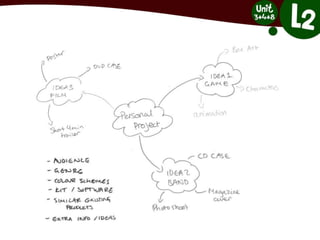This document provides an overview and instructions for a personal production project. Students will create a package of related products based on a consistent concept or theme of their choosing. Examples of past student projects include magazines, posters, CD/DVD cases, t-shirt designs, video game assets, and more. The process involves initial planning, research on similar existing products and the intended audience, production experiments, a formal proposal, pre-production tasks like style sheets and layout plans, the production stage, and concluding tasks like peer feedback and evaluation. Detailed instructions are provided for each stage to guide students through the project.
