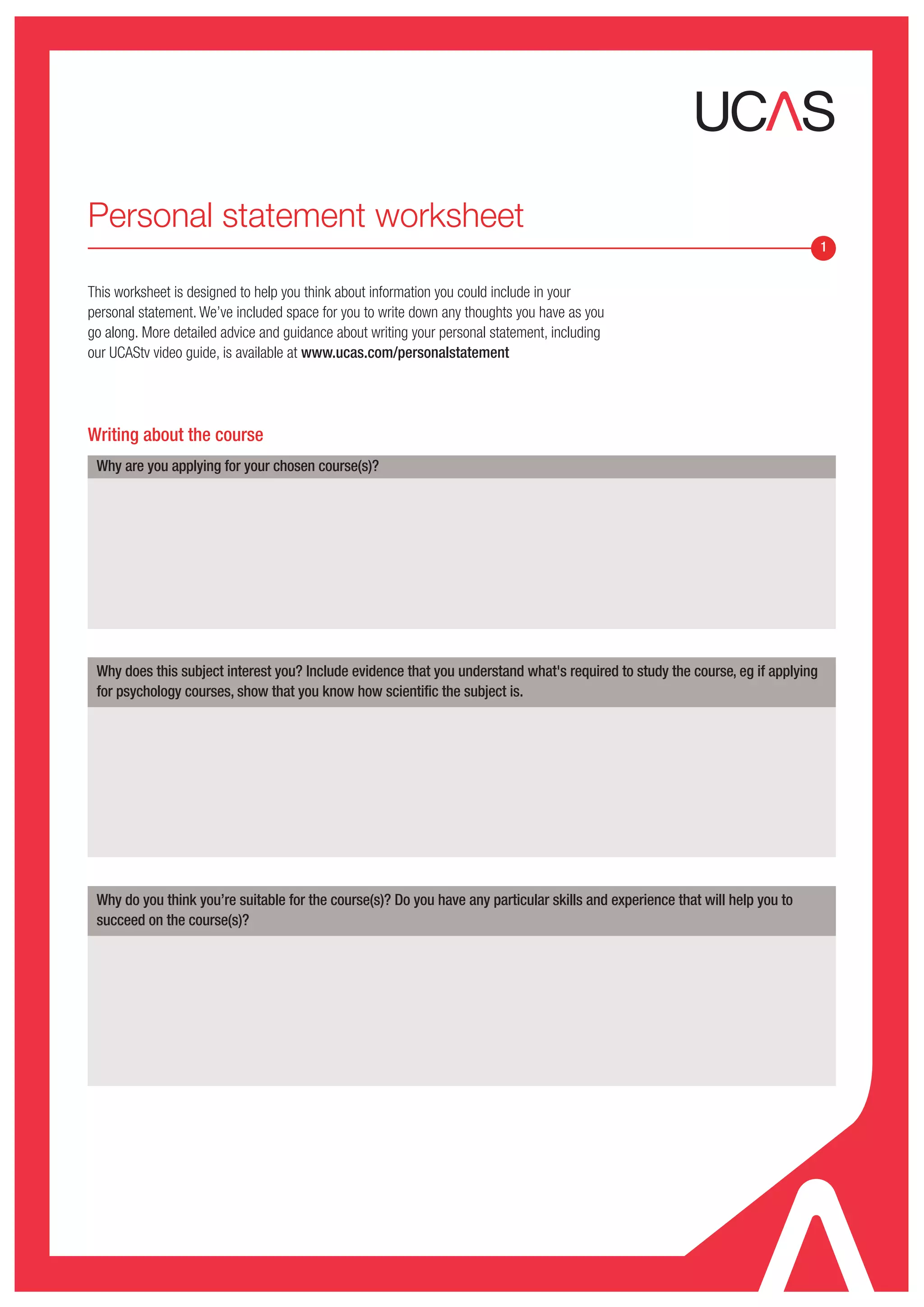 This document provides guidance to help students complete a personal statement for their university application. It includes prompts for students to write about why they are applying for their chosen course, what interests them about the subject, and how their skills and experience will help them succeed. Students are encouraged to discuss relevant academic background, extracurricular activities, skills, achievements, hobbies, work experience, and future plans. Finally, it provides tips on writing an effective personal statement in a clear and enthusiastic manner.