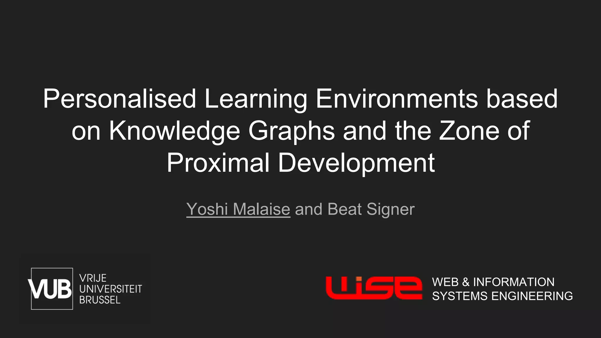 The document discusses the development of personalized learning environments using knowledge graphs and the zone of proximal development, emphasizing trainers' functional requirements for managing exercises, evaluations, and player performance. It highlights Kolb's learning styles and motor skill acquisition models as frameworks to enhance training sessions. The future work includes expanding knowledge graphs and refining assessment methods.