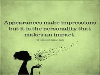 The document discusses the nature and determinants of personality, including heredity and environment, and outlines various personality traits using frameworks such as the Myers-Briggs Type Indicator and the Big Five personality traits. It also identifies four temperaments and their characteristics, alongside tips for enhancing one's personality and traits of effective teachers. Additionally, it emphasizes the impact of personality on teaching and learning processes.