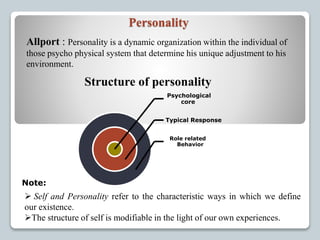 1. Allport defined personality as the dynamic organization within an individual that determines their unique adjustment to the environment.