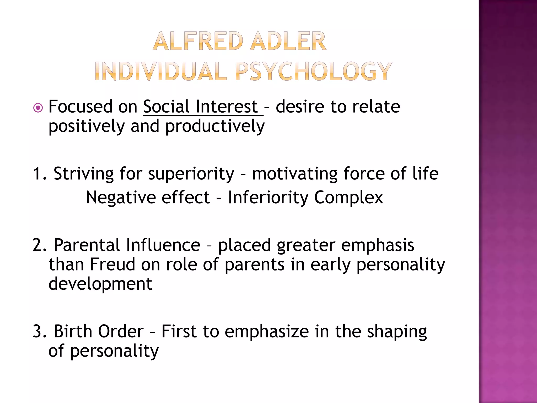 This chapter discusses several neo-Freudian theorists and their expansions on Freudian psychoanalysis. Alfred Adler focused on social interest and the striving for superiority. Erik Erikson described 8 stages of psychosocial development and the importance of establishing identity. Karen Horney discussed psychological health and neurosis as well as three interacting styles of relating to others. Carl Jung disagreed with Freud on aspects like the life force and focused more on spirituality and archetypes in the collective unconscious like the anima/animus and persona. Jung also described personality types of introversion/extroversion and ways of thinking like sensation and intuition.