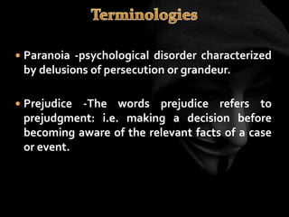 The document provides an overview of various personality disorders, highlighting their characteristics, typical behaviors, and potential coping mechanisms. It notes how these disorders can impact relationships and daily functioning, often beginning in adolescence or early adulthood, with individuals typically unaware of their maladaptive patterns. Additionally, it discusses treatment options and the difficulties faced by those living with someone who has a personality disorder.