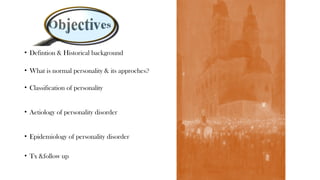 Personality disorders are a group of mental health conditions characterized by enduring patterns of behavior, cognition, and inner experience that deviate from cultural expectations. These patterns are often inflexible and pervasive, leading to significant distress or impairment in social, occupational, or other areas of functioning.