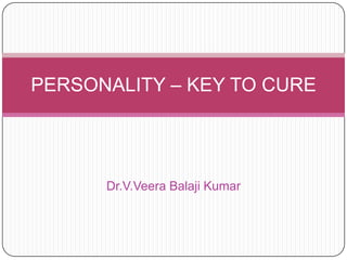 The document discusses how personality is shaped by both nature and nurture. It describes personality as a consistent pattern of thoughts, feelings and behaviors. While genes play a role, most scientists believe environmental factors like family, culture and physical conditions have the greatest influence on personality development. Birth order, parental characteristics, and cultural norms around individualism or collectivism can impact worldviews and traits. Freud's psychoanalytic perspective also influenced theories on unconscious motivations and personality structure. Homeopathic remedies are proposed to relate to distinct personality types.