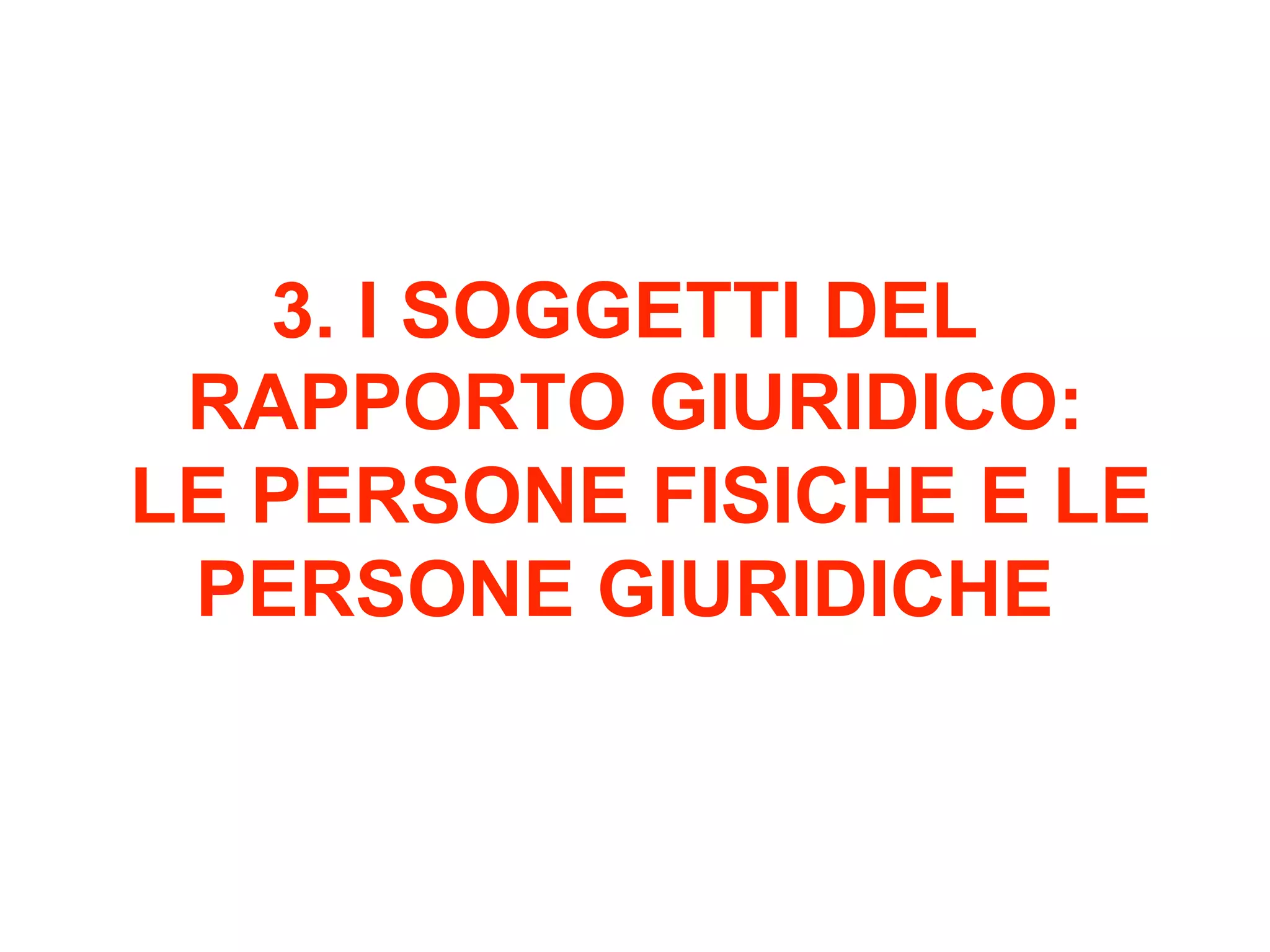 Il documento descrive i soggetti del rapporto giuridico, distinti in persone fisiche (individui) e persone giuridiche (enti). Viene analizzata la capacità di agire, che si acquisisce con la nascita e si perde con la morte, includendo le diverse categorie di incapaci d'agire come minori e interdetti. Inoltre, si parla dell'amministratore di sostegno e delle norme relative alla capacità giuridica dei minori, compresi i diritti speciali all'età di sedici anni.
