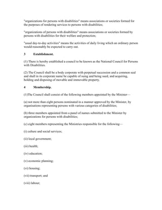 This document is an Act of Parliament in Kenya that establishes rights and protections for persons with disabilities. Some key points: