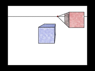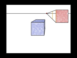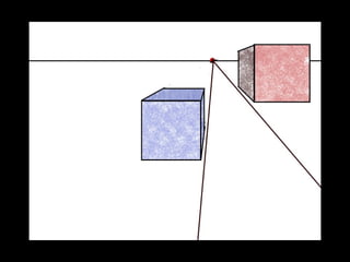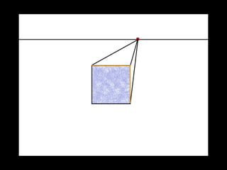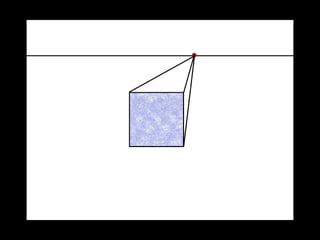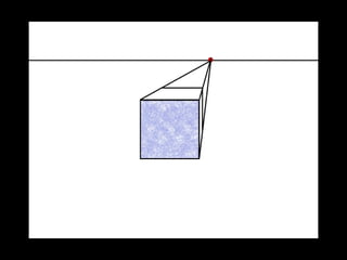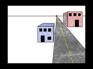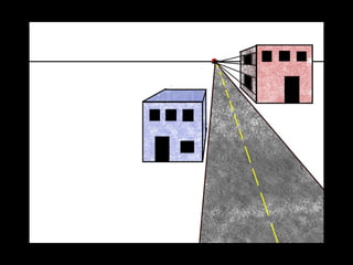 Perspective is a technique in art that makes objects appear three-dimensional by drawing lines that converge at a single vanishing point, making edges appear to recede into the distance. Artists use perspective by establishing a horizon line with a vanishing point and then drawing lines from the corners of objects back to that point to create the illusion of depth as the lines disappear towards the point.