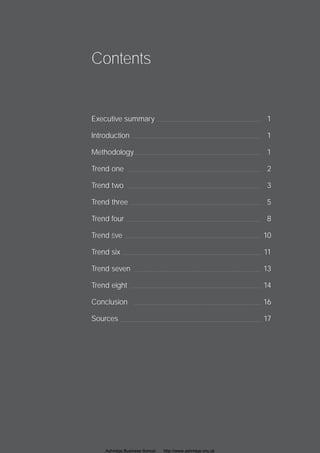 The document discusses trends in the future of learning based on research with learning and development professionals. It finds that learning will be continuous, blending just-in-time and just-in-case approaches. Learning will be customized to organizations and personalized to individuals, drawing on technology. It will also need to be flexible to overcome time constraints. There will be demands for learning support to help navigate information overload. Learning will need to be packaged to support work challenges and delivered in bite-sized chunks to match shorter attention spans. A mix of formal and informal learning will be needed.