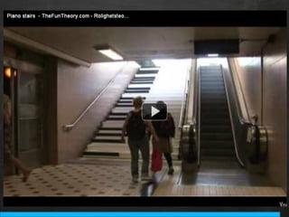 The document discusses the concept of persuasive design, which is about influencing choices without coercion. It explains that designers can subtly influence behavior through small details and by understanding human psychology. Specifically, it describes how people tend to discount future rewards and benefits, are swayed more by immediate needs and emotions, and have biases that can be addressed through design, such as by making positive behaviors the default choice or easy option. The overall goal of persuasive design is to automate behavior change for the better by addressing human tendencies and biases.