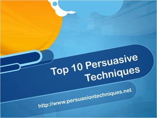 The document provides a list of persuasive techniques and elaborates on their importance in effective persuasion. Key strategies include setting the mood, asserting dominance, being trustworthy, finding common ground, and using logical, emotional, and ethical appeals. Each technique is designed to enhance the persuasive process and increase the likelihood of achieving desired outcomes.