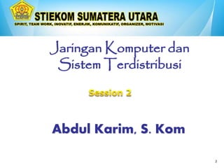 Dokumen ini menguraikan perbedaan antara jaringan komputer dan sistem terdistribusi, menjelaskan struktur, fungsi, dan komunikasi dalam kedua sistem tersebut. Jaringan komputer terdiri dari komputer yang terhubung secara langsung dan workstations, sedangkan sistem terdistribusi melibatkan host dan terminal untuk menjalankan tugas bersama. Selain itu, dokumen ini juga mencakup jenis-jenis kabel dan perangkat keras yang digunakan dalam jaringan komputer.