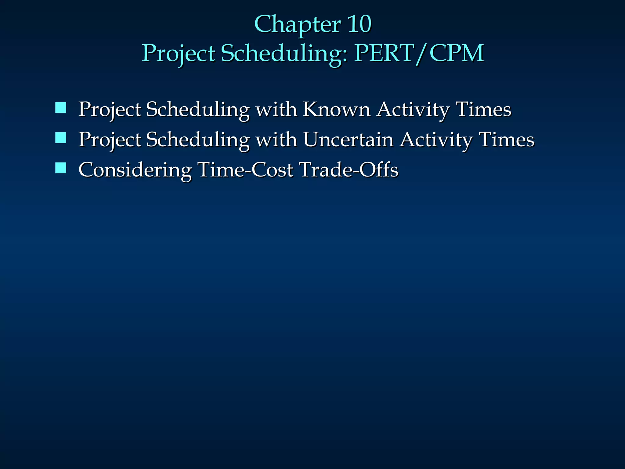 The document discusses project scheduling techniques like PERT and CPM. It provides an example of using these methods to schedule the building of an elaborate parade float. Key activities, durations, and dependencies are laid out. Calculations are shown to determine the critical path, earliest and latest start/finish times, and project completion time. For activities with uncertain durations, a three-time estimate approach is described to model duration as a distribution and calculate the probability of on-time completion.