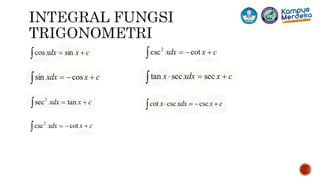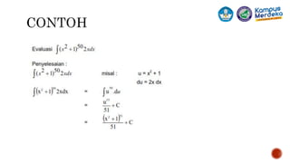 Mata kuliah ini membahas konsep integral tak tentu, tertentu, dan operasi matriks untuk memecahkan permasalahan teknik. Mahasiswa akan mempelajari teknik-teknik integral seperti integral dasar, integral pecah rasional, dan integral parsial beserta penerapannya dalam masalah teknik sipil menggunakan integral. Penilaian terdiri atas tugas, UTS, dan UAS. Kuliah dilaksanakan secara tatap muka atau daring tergantung kebijakan univers