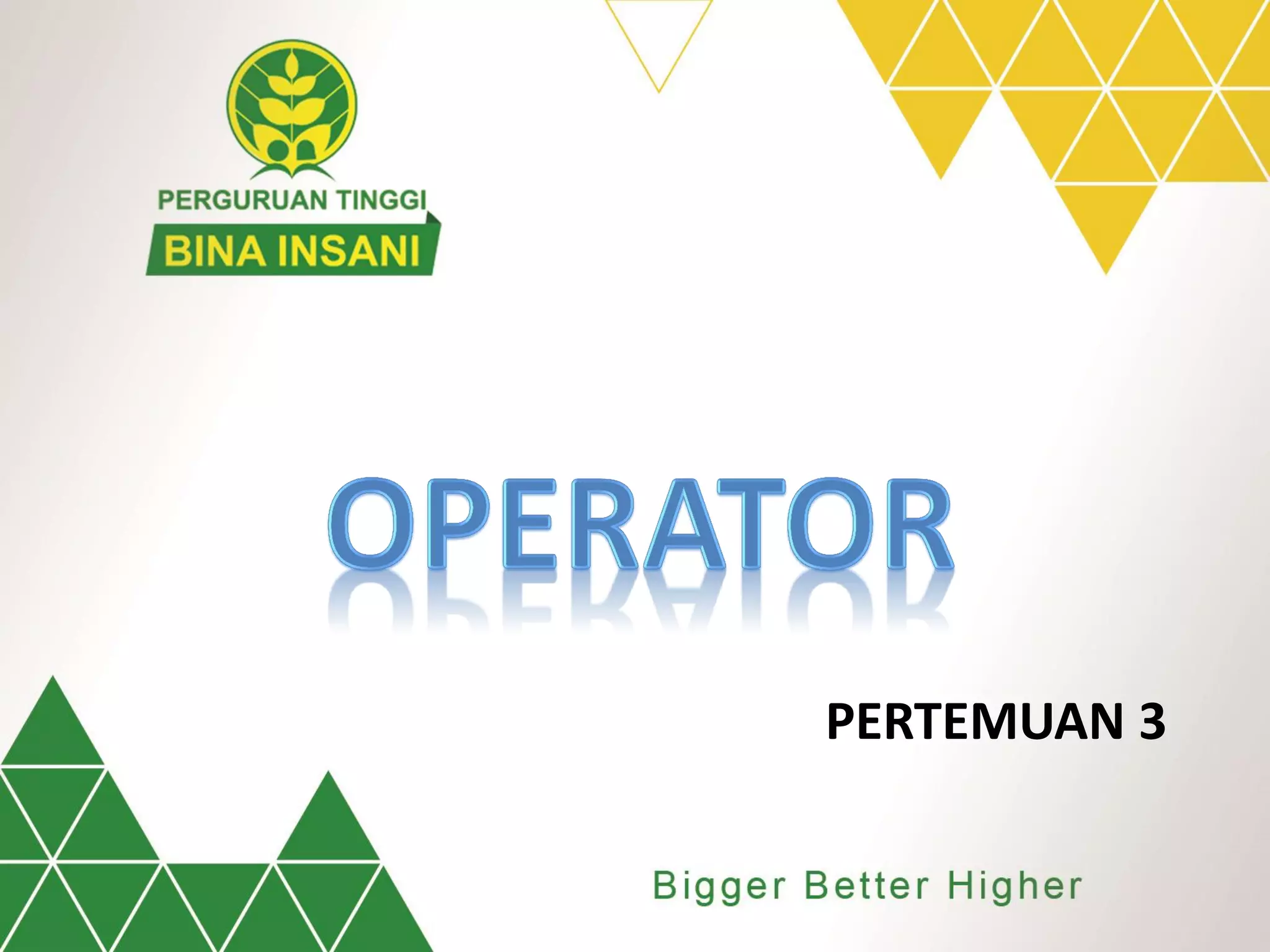Dokumen ini membahas tentang operator dalam pemrograman, termasuk definisi, jenis-jenis operator (unary, binary, ternary), serta sifat dan contohnya. Selanjutnya, dijelaskan tentang hierarki operator aritmatika dan operator hubungan yang digunakan untuk membandingkan dua nilai. Dokumen ini juga mencakup contoh kode dalam C++ untuk menunjukkan penggunaan berbagai operator dalam program.