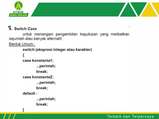 Flowchart menggambarkan urutan logika suatu proses pemecahan masalah dengan simbol-simbol tertentu. Terdapat tiga struktur flowchart yaitu sekuensial, percabangan, dan perulangan. Pseudocode digunakan untuk menjelaskan algoritma dengan bahasa sederhana.