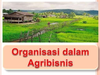 Dokumen ini menjelaskan tentang agribisnis dan peran kelembagaan dalam sistem agribisnis, termasuk berbagai jenis organisasi yang terlibat dalam produksi, pemasaran, dan pengolahan hasil pertanian. Selain itu, dokumen ini menguraikan jenis-jenis badan usaha, seperti persekutuan dan koperasi, serta karakteristik dan fungsi masing-masing. Koperasi di Indonesia dijelaskan sebagai bentuk organisasi ekonomi yang bertujuan untuk meningkatkan kesejahteraan anggota melalui prinsip-prinsip demokratis.