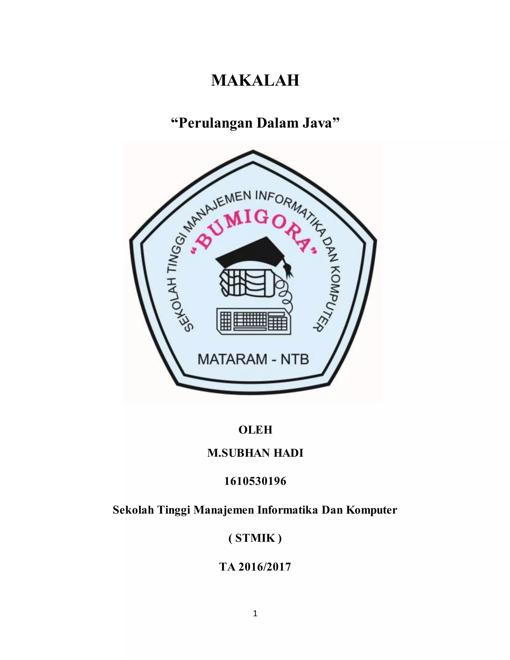 Makalah ini membahas konsep perulangan dalam pemrograman Java, termasuk pengertian dan penerapan perulangan for, while, dan do-while. Penulis juga menyoroti pentingnya pemahaman algoritma dalam konteks perkembangan teknologi komputer. Kesimpulan menyatakan bahwa algoritma adalah langkah-langkah logis untuk menyelesaikan masalah yang direalisasikan dalam program komputer.
