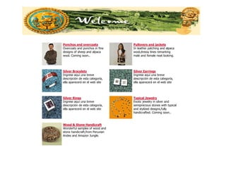 Peruvian artcrafts have a long history and come in a great diversity of forms. They represent an important part of Peru's cultural identity and economy, providing income for many families and communities. Common artcrafts include textiles, pottery, carved gourds and woodwork that showcase intricate designs and blend of indigenous and Spanish influences.