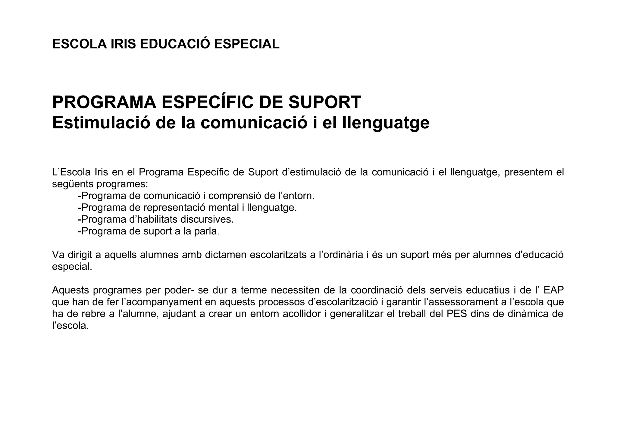 L’Escola Iris en el Programa Específic de Suport d’estimulació de la comunicació i el llenguatge, presentem el