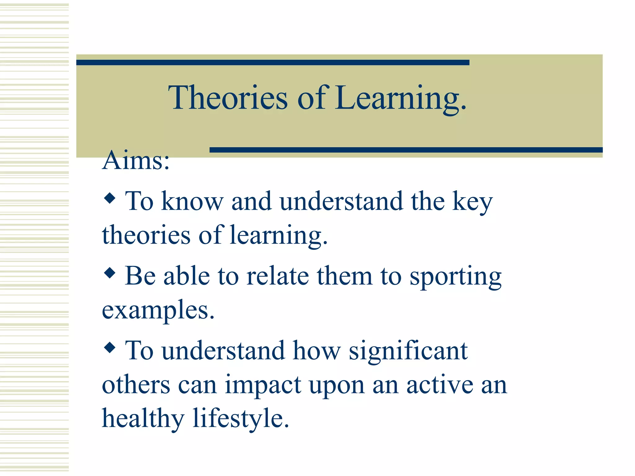 The document discusses several theories of learning: