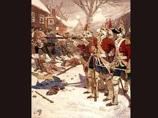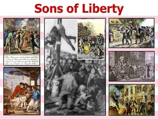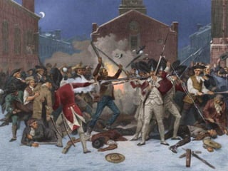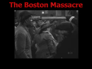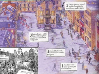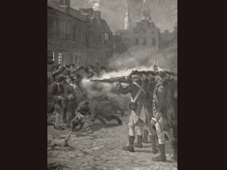 The document discusses sovereignty over the American colonies as tensions rose between Great Britain and the colonies. It explains that Britain maintained legal sovereignty but its actual control was weakening as the colonies grew more autonomous. As Britain tried to reassert control through taxes and laws, the colonies began to unite in opposition to taxation without representation. This growing conflict came to a head with events like the Boston Massacre, increasing tensions and pushing the colonies closer to revolution for independence from British rule.