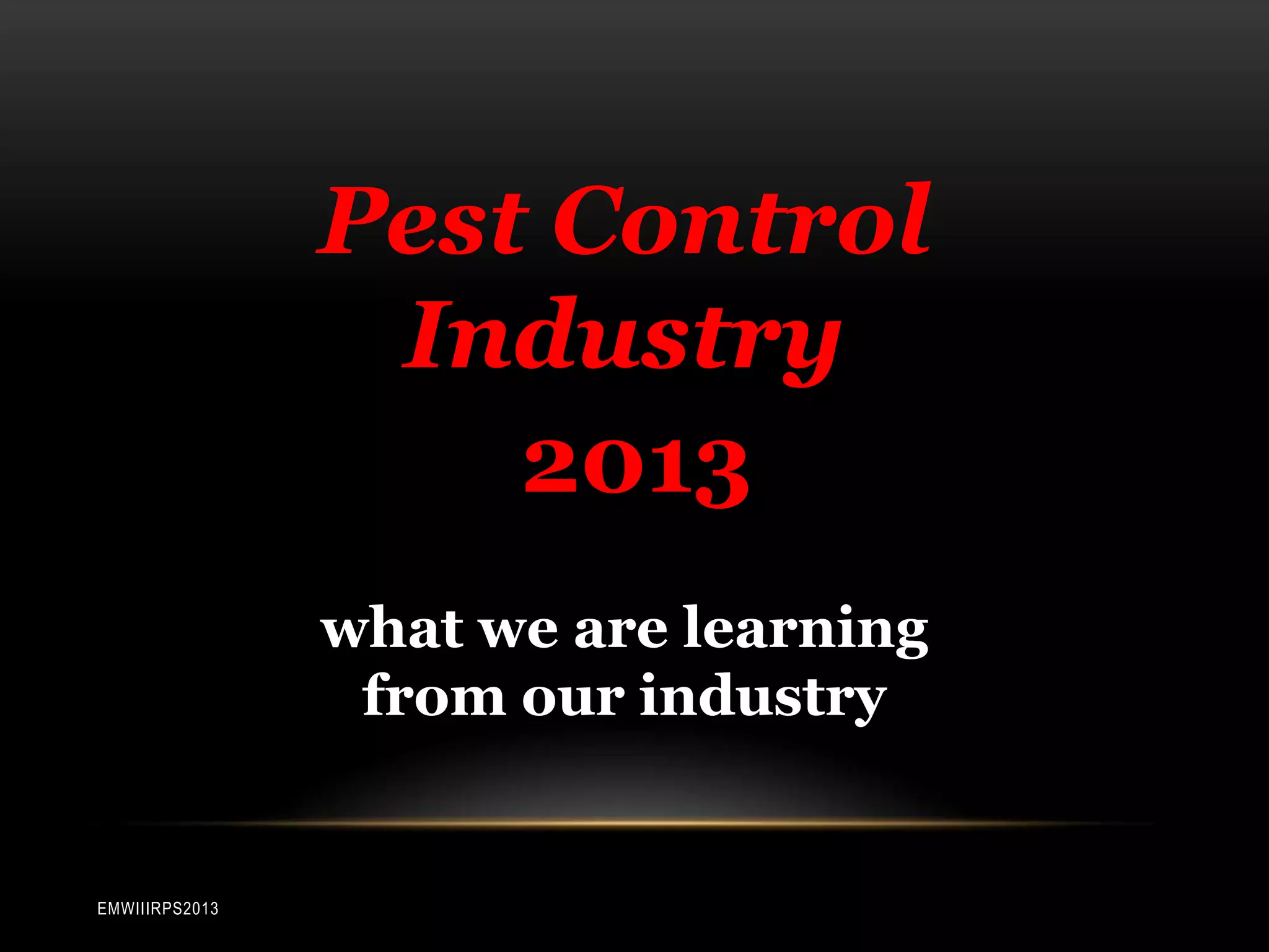 The document summarizes trends in the pest control industry from 2013. It finds that recovery in the housing market, increased regulations in hospitality/food industries, and a rise in bed bugs are driving demand. The shift to organic pest control products will require more frequent applications. Technological advances are improving efficiency. Consolidation in the industry is occurring through acquisitions. The market is projected to grow at a rate of 2.6-4.2% annually through 2017.