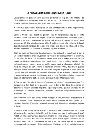 LA PESTA BUBÒNICADE SON SERVERA (1820)