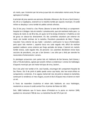 primera epidèmia, finalitzant amb la de 1820 a Son Servera.