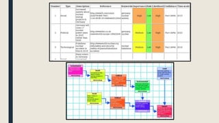 This document discusses PESTLE analysis, a framework for analyzing the macroenvironmental factors that may impact an organization. It defines each letter of the PESTLE acronym - Political, Economic, Social, Technological, Legal, and Environmental factors. For each factor, examples are provided of relevant considerations for analysis. The aims of conducting a PESTLE analysis are also outlined, which is to provide an overview of external factors to inform strategic decision making. A graphical method called PESTLEWeb is described for mapping out the analysis. In conclusion, PESTLE analysis allows businesses to evaluate a wide range of macroenvironmental variables that can influence operations.