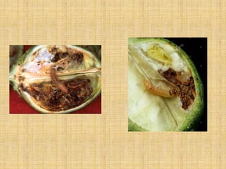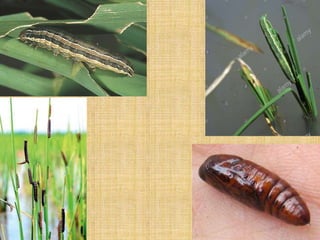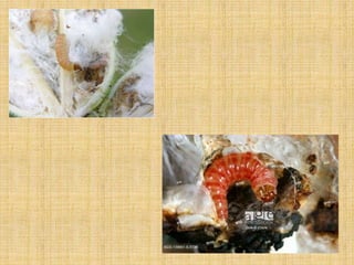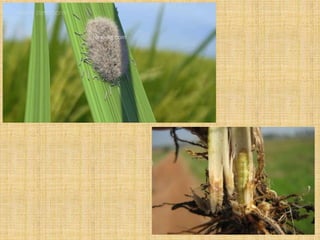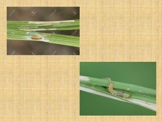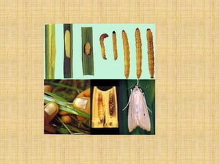 This document discusses several lepidopteran pests that affect crops like cotton and rice. It provides details on the lifecycles, damage caused, and control methods for the following pests: