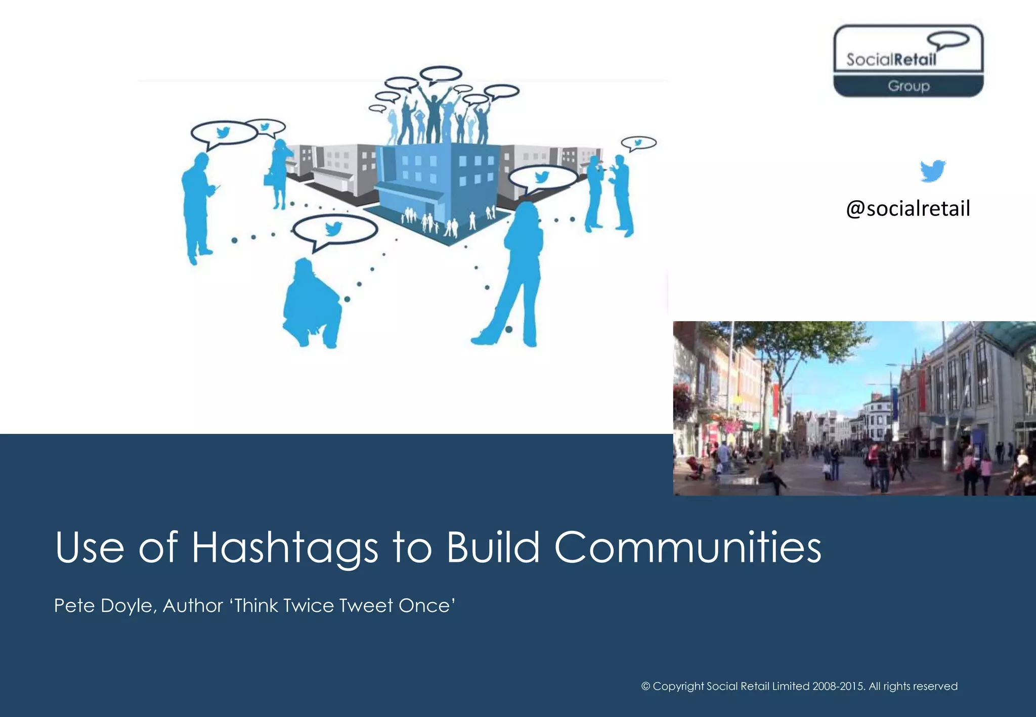 The document discusses the use of hashtags for enhancing engagement at trade events, highlighting how they can create sustainable digital communities. It provides practical tips for effective hashtag use, such as checking existing uses, capitalizing words for clarity, and establishing annual event hashtags. Strategies for participant interaction are also suggested, including tweeting questions and measuring engagement during the event.