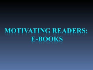 The document lists various online resources for accessing ebooks, audiobooks, and other digital content including library databases, free websites, mobile apps, and social media platforms. It also provides examples of specific school and public libraries that utilize different web 2.0 technologies on their websites and profiles like blogs, podcasts, Facebook pages, wikis, and social networking platforms. The document aims to highlight the many options available to libraries for engaging patrons and promoting resources in the digital era.