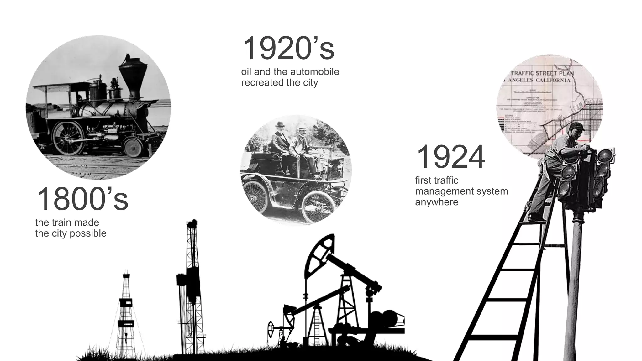 The document outlines key technological advancements in transportation and urban infrastructure from the 1920s to 2016, highlighting the impact of oil, automobiles, and the internet. It traces developments such as the first traffic management system in 1924, the introduction of hybrid and electric vehicles, and the rise of smart technologies in Los Angeles. The timeline emphasizes the ongoing evolution towards autonomous and connected cars and the integration of the Internet of Things in urban environments.