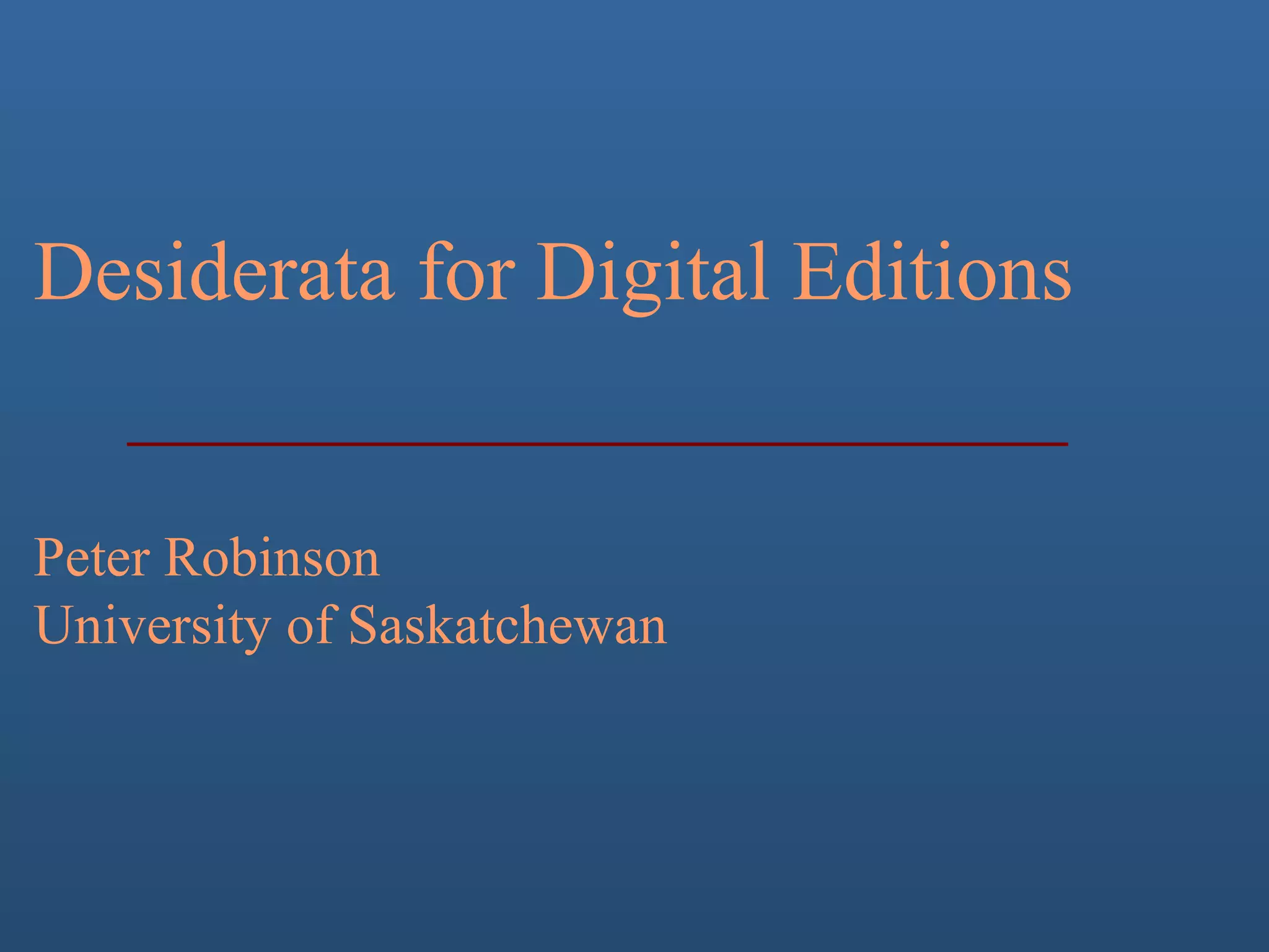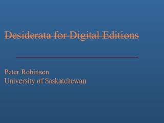 This document outlines desiderata for digital editions: