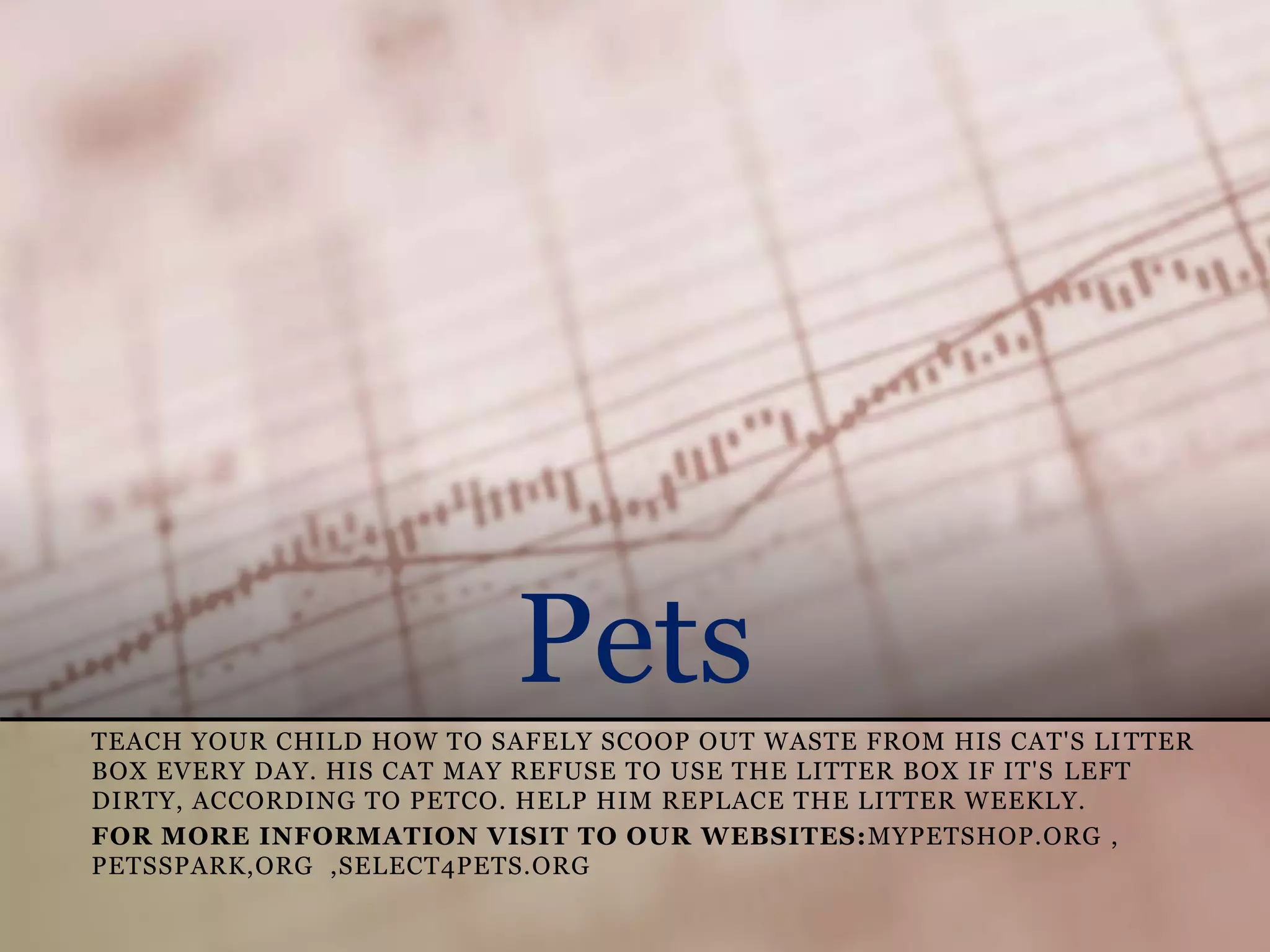 The document provides guidance for parents on how to teach their children to care for a pet, including responsibilities like cleaning the litter box, feeding, and maintaining a schedule. It emphasizes the importance of discussing the commitment required before getting a pet and offers tips for hygiene and care. Additional resources and websites are mentioned for further information on pet care and related games.