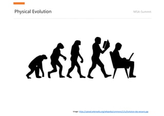 The document discusses the evolution of application architectures from monolithic applications to microservices. It begins with early approaches like physical servers and virtualization. It then progresses to newer approaches like containers, serverless computing, and event-driven architectures. Throughout, it uses analogies of pets, cattle, rabbits, and microbes to represent decreasing levels of manageability. It emphasizes that organizational structure, processes, tooling, and design patterns are important foundations for successfully implementing microservices.