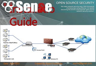 This document provides instructions for installing pfSense software on firewall appliances. It describes choosing installation types like full install or embedded, downloading the pfSense image, preparing installation media, performing the installation, assigning interfaces, configuring the default settings, and troubleshooting installation issues. The document is intended to guide users through the end-to-end pfSense installation process.