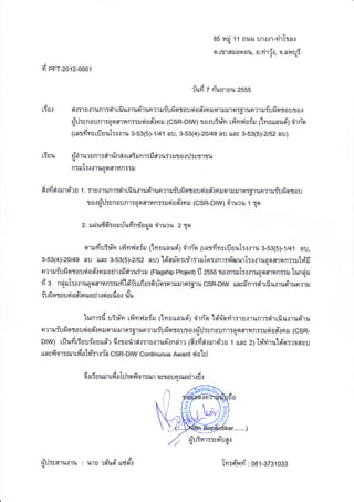 nilu u'1.1d't-Yirlrn.i sr.[31ffilafl au, a.yit{t, a.nr rqt fi ppr-2ore-ooor vAv 1UY17 nilUlUU 2555 tT0rl ci.::rumunl:d1rfiH{ludrun:rufufioratoiaf.:nilg"lrJrJ1st:g'tun?lilfufiorrautar thJ:rnounr:q$fllnnrrilsio#.,1n;.r (csR-Dtw) lJo{u3#yr rfinrnla{ru flvruunud'; qrq ,flrn-o ias. (r8irylyrrruuilL:{it'lu 3-53(5)-1141 ffu, 3-53(4)-20149 flu ua3 3-53(5)-2152 nu) 9o o I A r t:tJu r^iiiru: ,u rnr:ihtln rtr re5iln'lriid':ud? rJr anilrsytru I n:er [T{ir1uaofl1un::il t .J ^j, fi.rfirttlrEiril 1. :'tuit'tunr:rirtf,utruoiruneufufiorausia#.:nruenruulerrg'tiln?.truiufiorau sal pi:J:rn ounlTa o ff"114n::il ei a #.1 rt ri (CSR-DIW; d'ru'lu t ro z. uniuGdrarul-ufindoun o$ruru 2 ro iui slslfiuiffl ufryrrnlofl llnuunuai'1 tirn-o (ratfim;rfiuul:s.r1il 3-s3(s)-1t41 flu, 3-53(4)-20149 du ttss 3-53(51-2152 au1 trirrier:rtiri:ru1sr:rnr:rieru'r1:t.:ruaoarun::rul#fi ottlt:-ufiettouaia#.:ntodr.ofrriru*?eJ (Flagship Project) fl esss ra.:n:ru1:o.t'lilqamfin:Ter tundl d e ndul:.:.,nuonnrHn::rufi'lri:-urfiu:6riq:nruilrflTslu CsR-Dtw uncfinr:dtfiu.l'rueirun'lur 994 uA,uj& TUHOToUO 0fl.]0il0U1{9t AtU0.l 1.t1{ q J av d lunr:f, uirivr rrfiyrrla{ru llmuunud'; ,f,rriq 16io-errir:rurrunr:Eirrfiu.:ruoiru A a I v u a Vt nmil:=ufrotouqiod-.:nuqr1ilil1ar{'runru:-ufiotaura.rr'irj:snoiln1:ost6nfin:Tilqi0alnu ICSR- Dlw) rf,ufiriuufauu#r 6rraflrei.::ru.:ruo-.:neirl 1fi.rfiri.rurciru 1 unr zy trdvirulcYor:?oflou uo ; r{or:r*r rrfr alvY:'x r-a cSR-Dtw Conti n uous Rwa ro si a1:J a d is, C.lriuuurrfi a lrj:orfr m:nn afl aunI ilatir.: f, I fitj*mu.:'ru { : lr1u :fud'uqi#.r Ivr:d'lnryi : os1 -3731 033