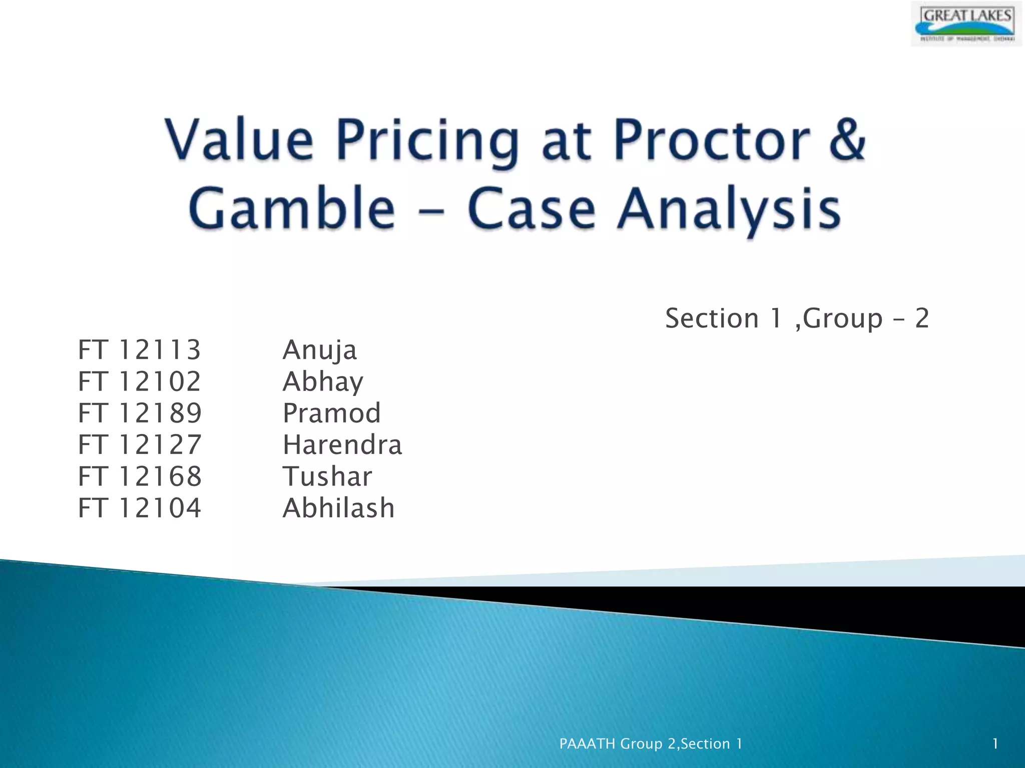 The document discusses value pricing and reducing list prices for P&G products. It analyzes profit margins for LDL (26.5%) and Coffee (6.5%) and determines LDL's price can be reduced while Coffee needs cost reductions. A 11% price reduction is calculated. Risks of frequent price changes include reduced topline, retailer compromise, and customer frustration/brand dilution. The approach for LDL should be price reduction while Coffee focuses on cost cuts.