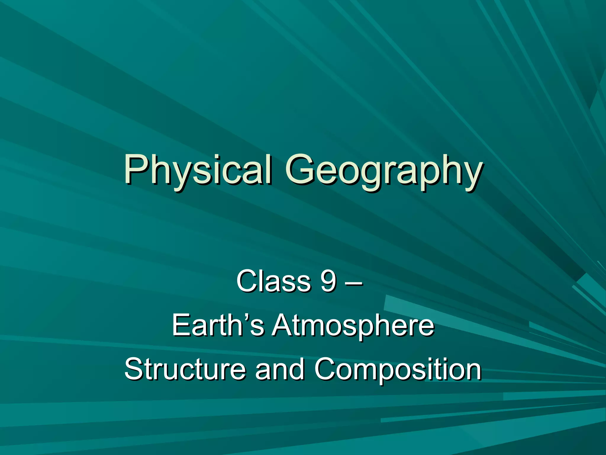 The document discusses the structure and composition of Earth's atmosphere. It can be summarized as follows: