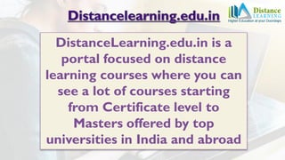 distancelearning.edu.in is a portal for distance learning courses, offering a range from certificate to master's level programs from top universities. The PGD in Business Management equips students with essential skills for managing organizations, addressing real-world challenges, and understanding corporate dynamics. Graduates can pursue various roles in the corporate and public sectors, including project manager, HR manager, and business analyst.