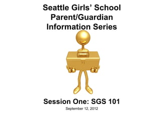 The document outlines the Seattle Girls' School's introductory session for parents and guardians, focusing on community building, resources, and essential school information. It encourages interaction among attendees to share experiences and questions regarding their daughters' education and school life. Key topics include academic support, communications, and upcoming programs aimed at enhancing the partnership between families and the school.