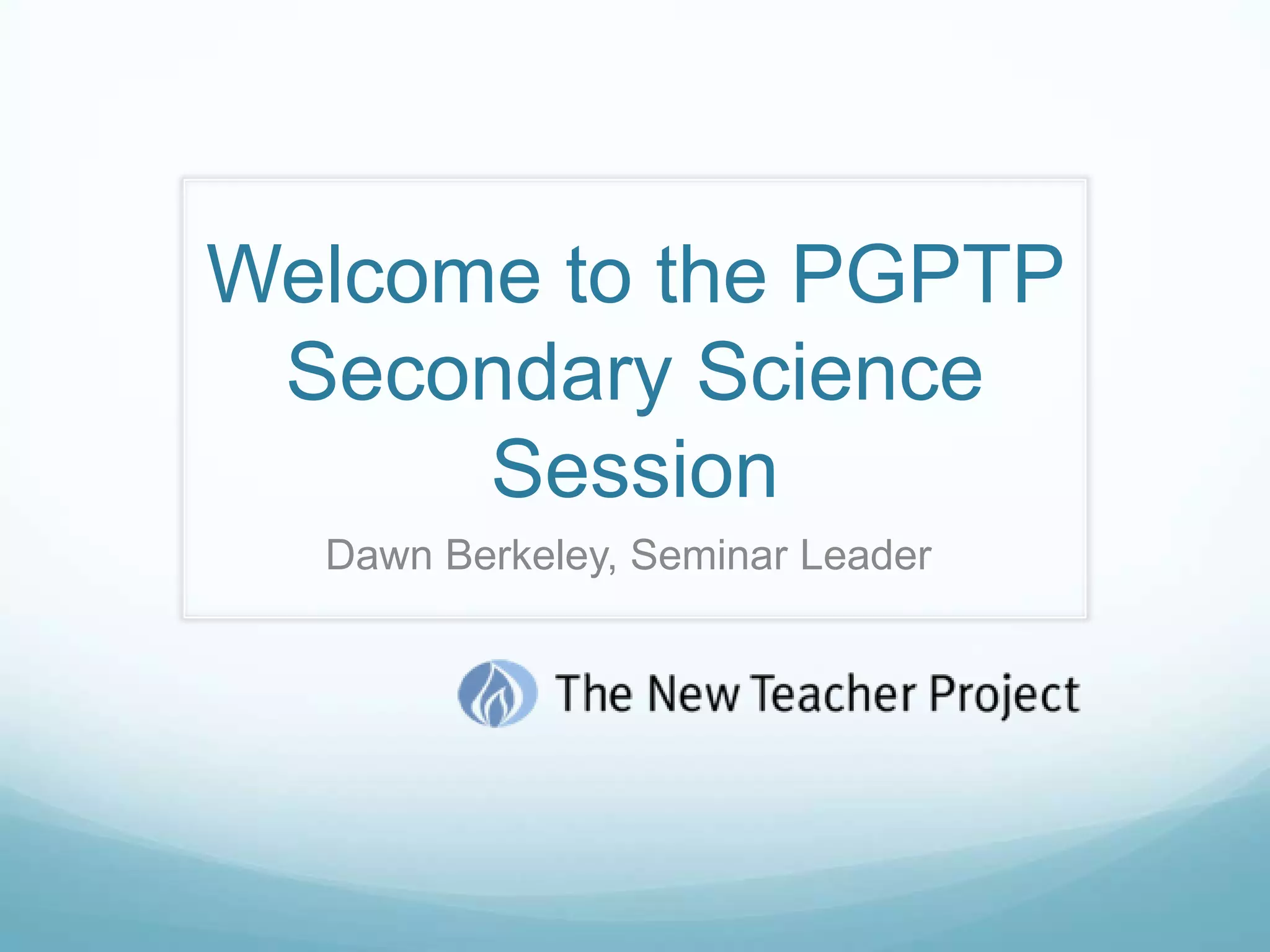 This document summarizes a professional development session for secondary science teachers. It discusses defining the science content domain through analyzing graphics and standards. Teachers analyze how the content domain and national standards are organized and relate to the science courses they teach. The goals are to deepen understanding of the content domain and standards to help teachers communicate the overall structure and goals of science to their students.