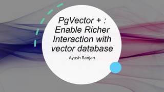 The document discusses the integration of the pgvector extension with PostgreSQL for vector similarity search, detailing its functionalities compared to dedicated vector databases like Pinecone. It outlines various use cases highlighting challenges and proposed methods for enhancing recommendation systems and handling dissimilarity constraints in search results. Additionally, it examines the technical aspects of pgvector, including its data types, indexing strategies, and mechanisms for optimizing performance in vector queries.