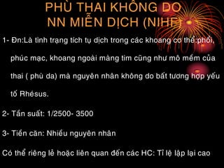 Tài liệu đề cập đến các tình trạng thai nhi khác nhau và nguyên nhân gây ra trong quá trình mang thai, bao gồm ảnh hưởng của các bệnh truyền nhiễm tới sức khỏe thai nhi. Nó cũng mô tả các phương pháp chẩn đoán và theo dõi tình trạng của thai nhi, cùng với các chỉ số sinh lý cần theo dõi sau sinh. Tài liệu nhấn mạnh tầm quan trọng của việc nhận diện các yếu tố nguy cơ và biện pháp can thiệp kịp thời để bảo vệ sức khỏe của mẹ và bé.