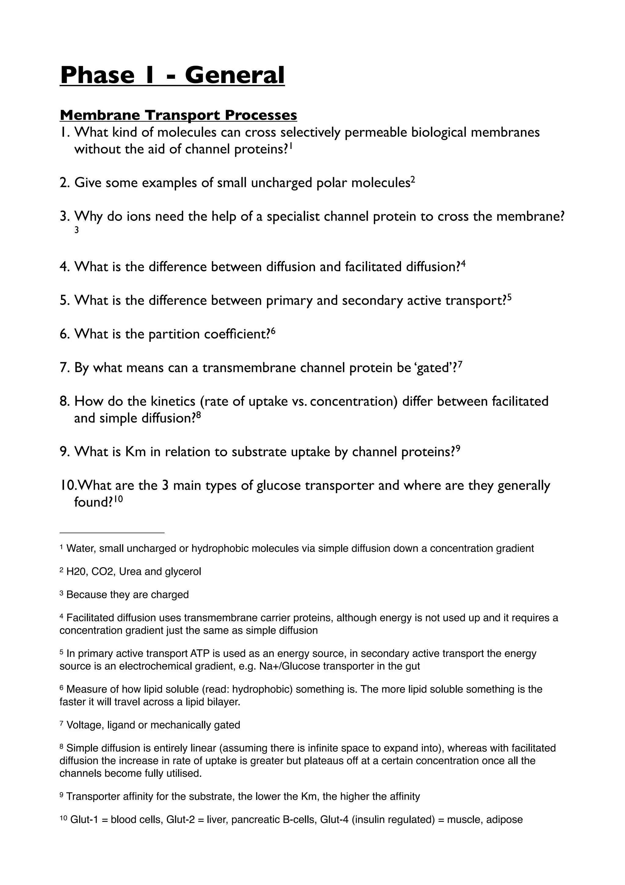 3. The questions cover molecular transport across membranes, acid-base balance mechanisms, nerve signaling pathways, anatomical structures and relationships, bone formation, joint types, and muscle origins and insertions.